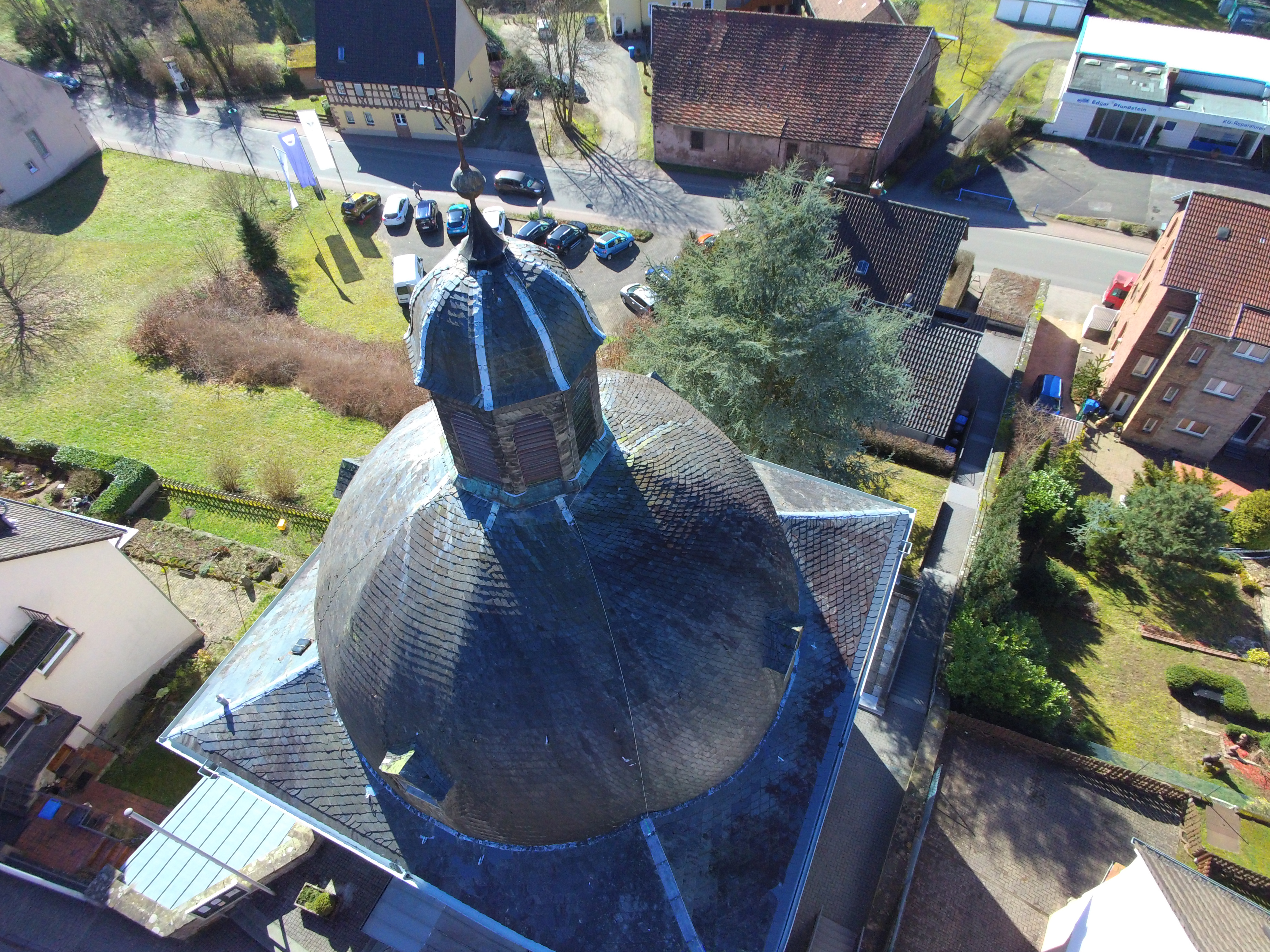 Bereits die erste Sichtung durch das Pirmasenser Architekturbüro arnold + partner im September 2024 hatte ergeben, dass die marode und undicht gewordene Dacheindeckung nicht mehr zu erhalten und dringend zu erneuern ist. Dies wurde im veranlassten Sachverständigengutachten des Dachdeckermeisters Kurt Reiner aus Emmelshausen bestätigt. Das daraufhin veranschlagte und ausgeschriebene Projekt brachte neben den Vorgaben des Denkmalschutzes insbesondere die Herausforderungen mit sich, ein für den Kuppelbau geeignetes Sondergerüst (Benoit Gerüstbau GmbH, Dellfeld) zu stellen sowie die Schalung und Eindeckung abschnittsweise von der Turmspitze bis zur Traufe abzutragen und neu zu errichten. Dies hatte zur Folge, dass sich das komplette Schadensbild erst spät zeigen würde. Für die Dacharbeiten ist mit der Reiner-Dach GmbH & Co. KG aus Dörth einer der noch seltenen Spezialisten für altdeutsche Deckungen beauftragt worden, für die Schalungsarbeiten die in Zweibrücken ansässige Zimmerei Zimmermann. Die abschließende Wiederherstellung der metallenen Dachspitze mit dem Wetterhahn übernimmt die Metallgestaltung Thomas-Maria Schmidt aus Höheischweiler.
