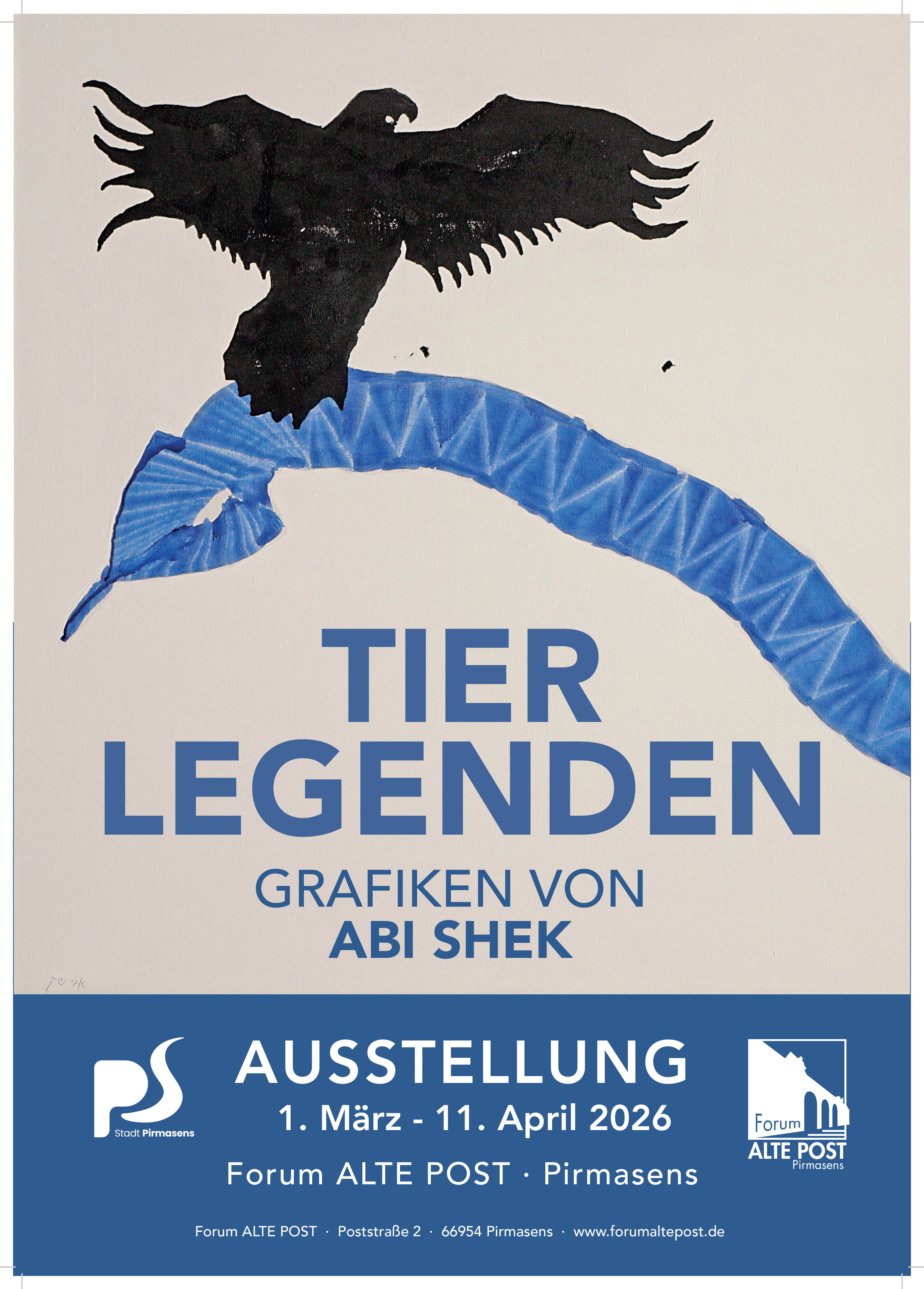 - Neue Wechselausstellung im Pirmasenser Kulturzentrum Forum ALTE POST präsentiert zeitgenössische Grafiken von Abi Shek und stellt eine Auswahl an Werken verschiedener Künstler aus dem 20. Jahrhundert vor