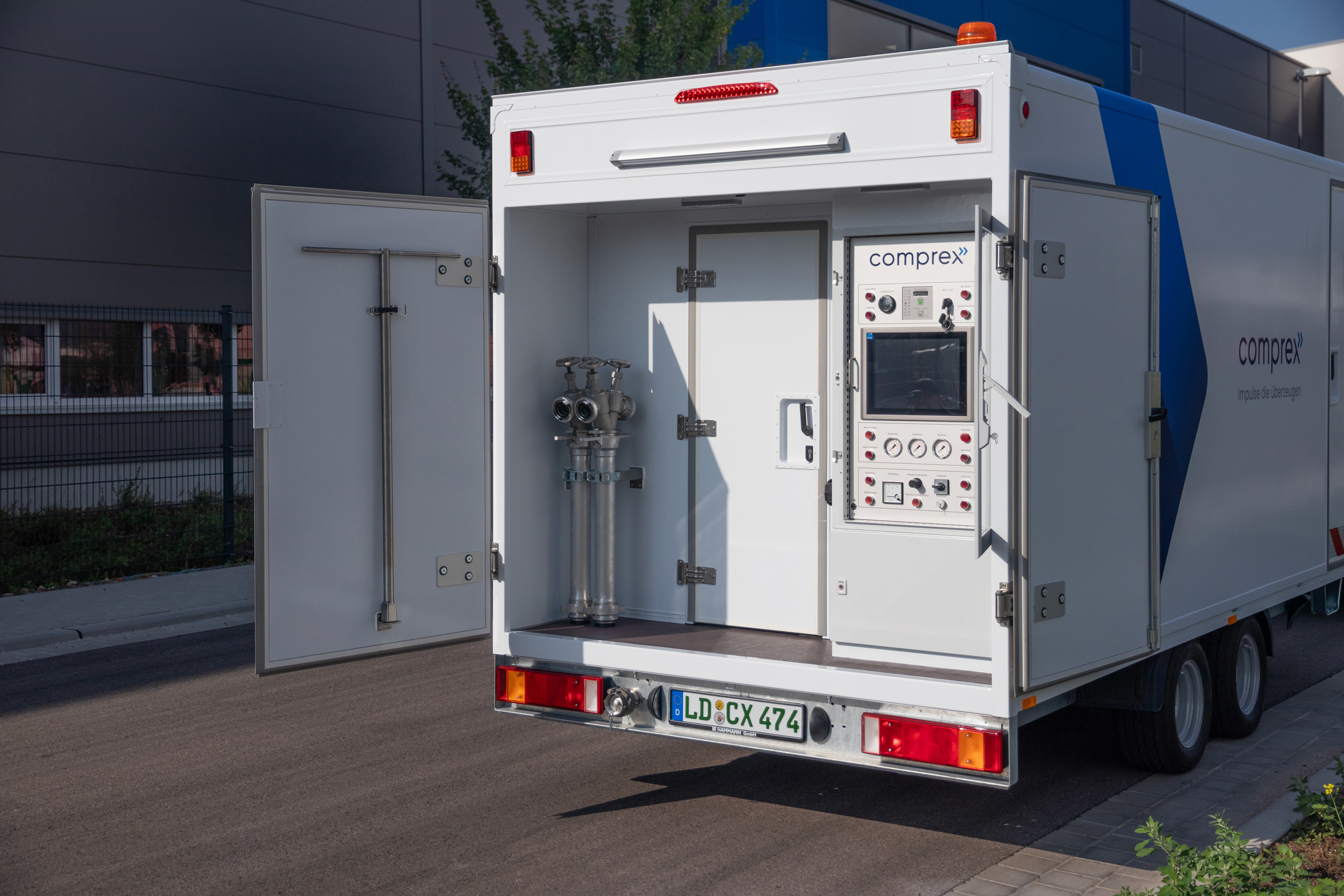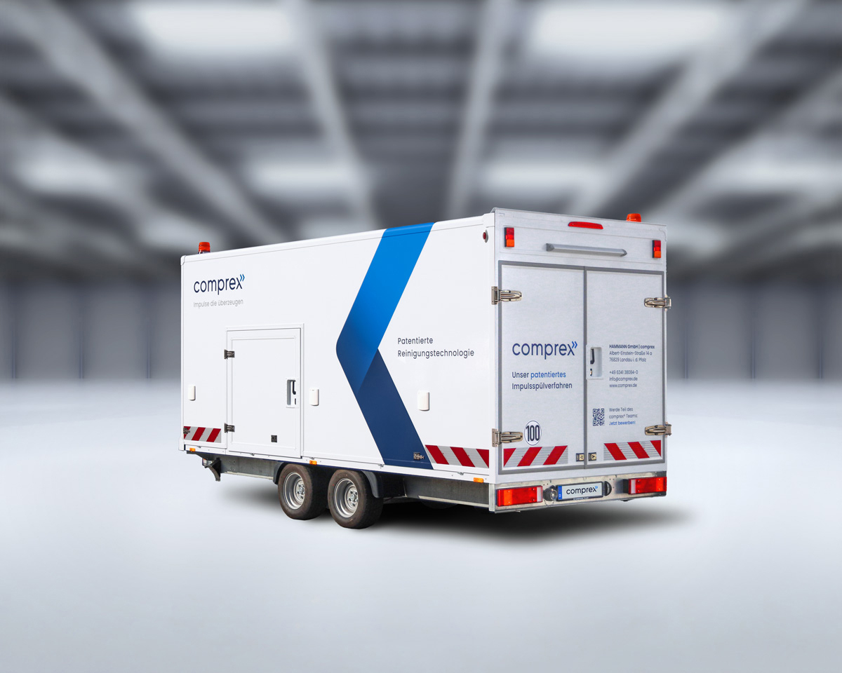 Das Anhängersystem wurde 1997 entwickelt und seither stetig verbessert. Bei dem integrierten und über ein Diesel-Aggregat autark betriebenen Comprex® Verfahren werden kraftvolle Reinigungsimpulse aus Luft und Wasser hochverdichtet (compress) und impulsartig mit einer Geschwindigkeit von validierbar bis zu 70 km/h in die zuvor entleerte Spülstrecke des Leitungssystems geschossen (expand). Durch den rein mechanischen und chemiefreien Prozess lassen sich lose Ablagerungen genauso schnell und gründlich entfernen wie hartnäckige Rückstände etwa aus Eisen, Mangan, Biofilm, Kalk- und Sandstein. Dies spart im Ergebnis gegenüber dem konventionellen Spülen bis zu 90 Prozent an Wasser und Zeit.